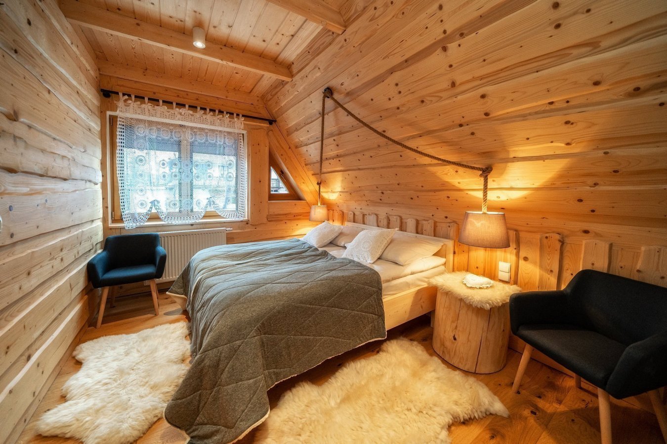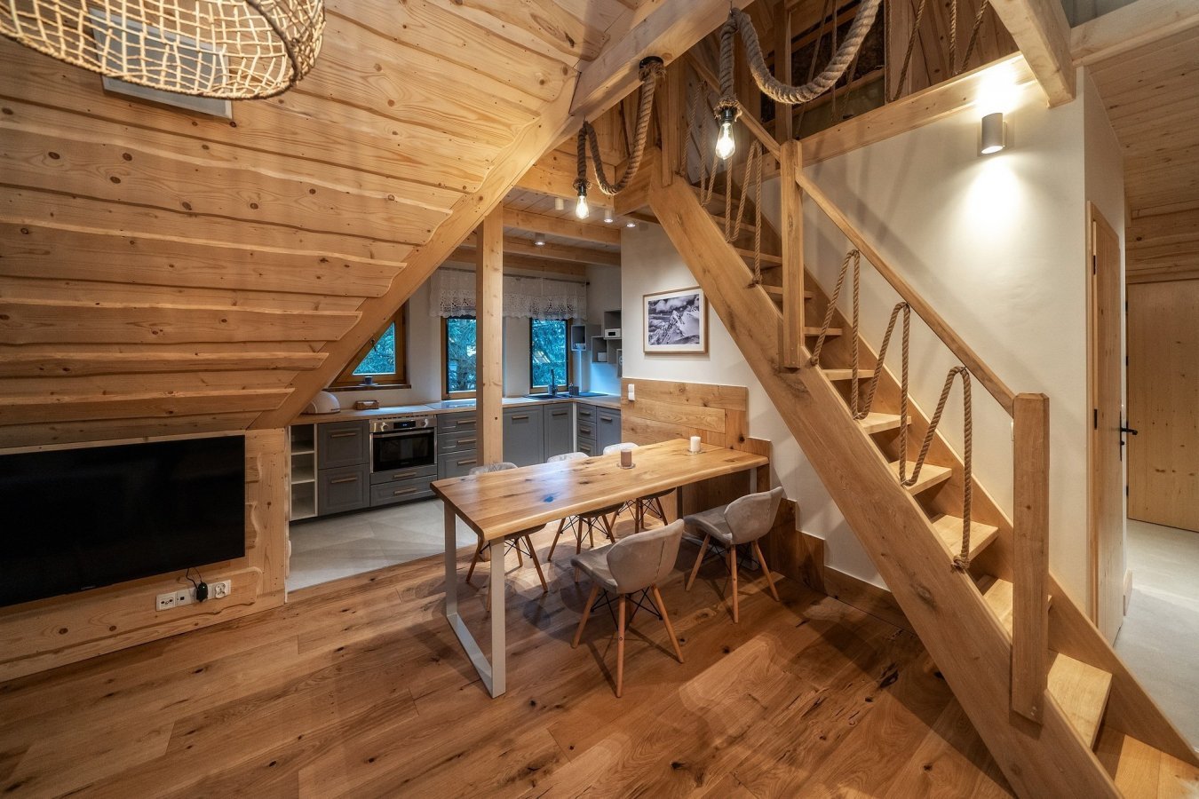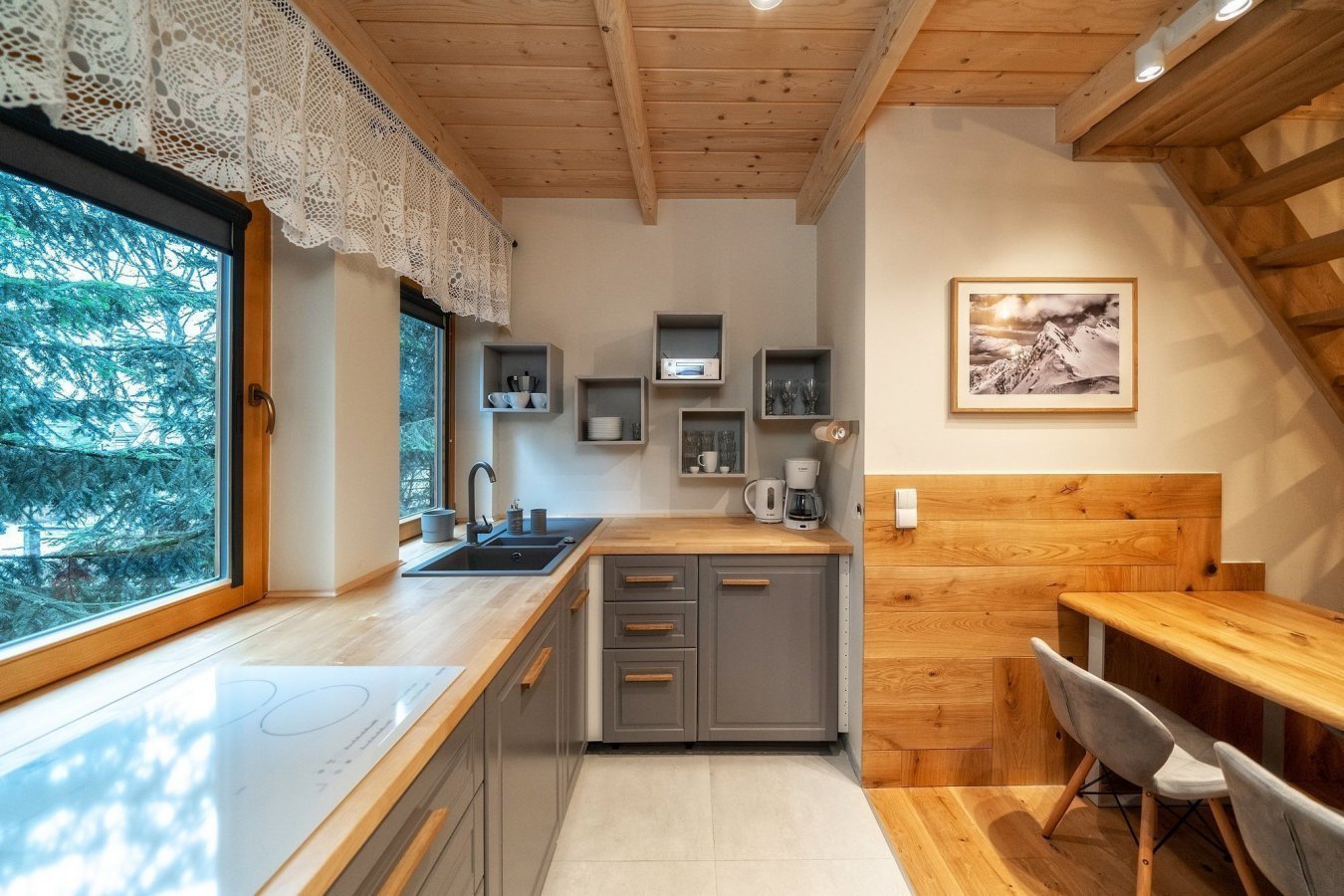 Piętrowy apartament z 4 sypialniami, w ciszy, w otoczeniu drzew, z zadaszonym tarasem z widokiem na Giewont.