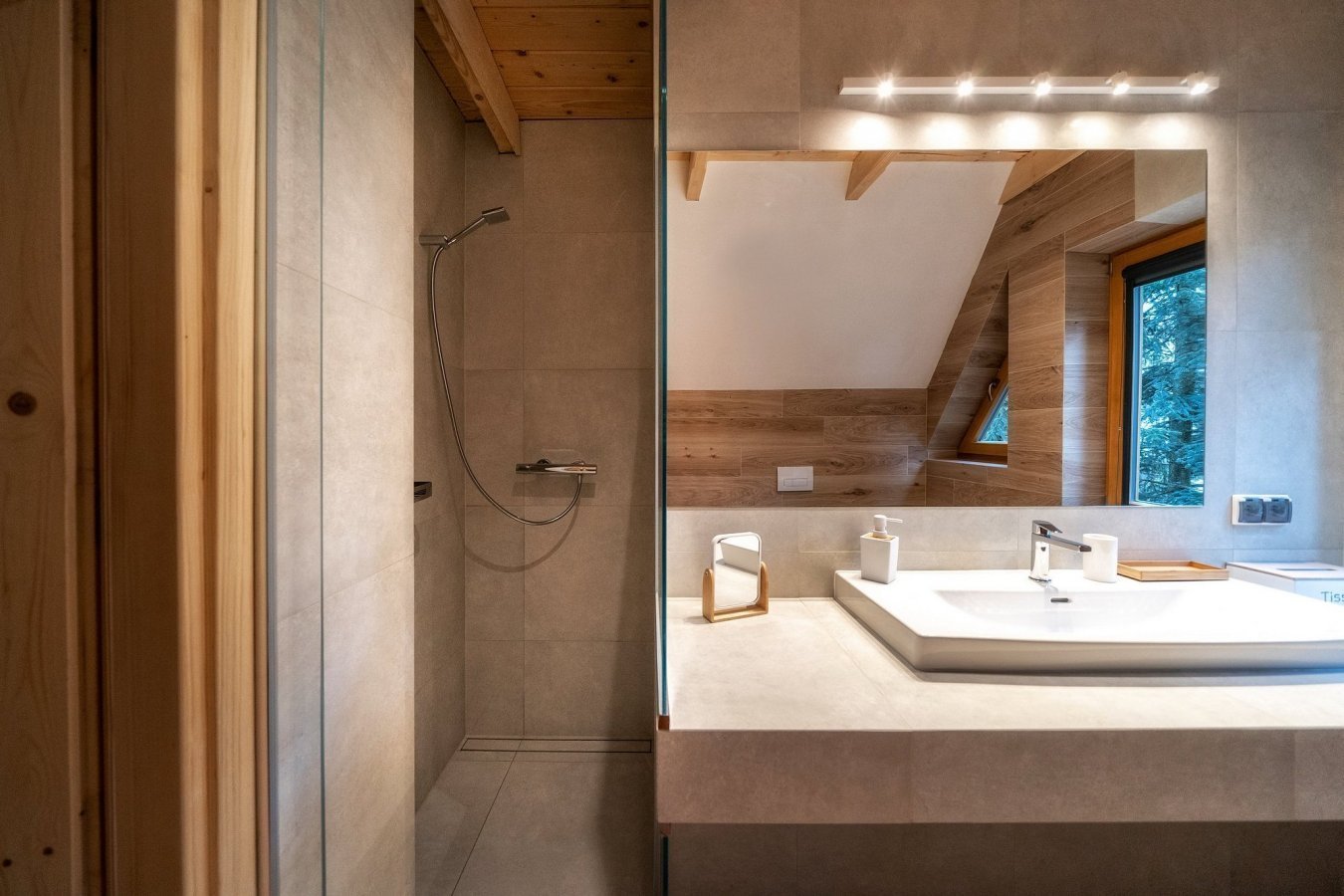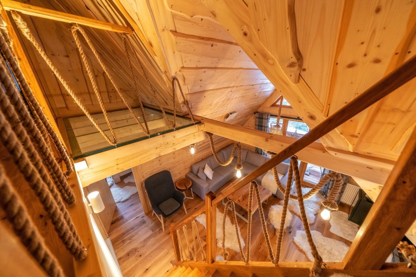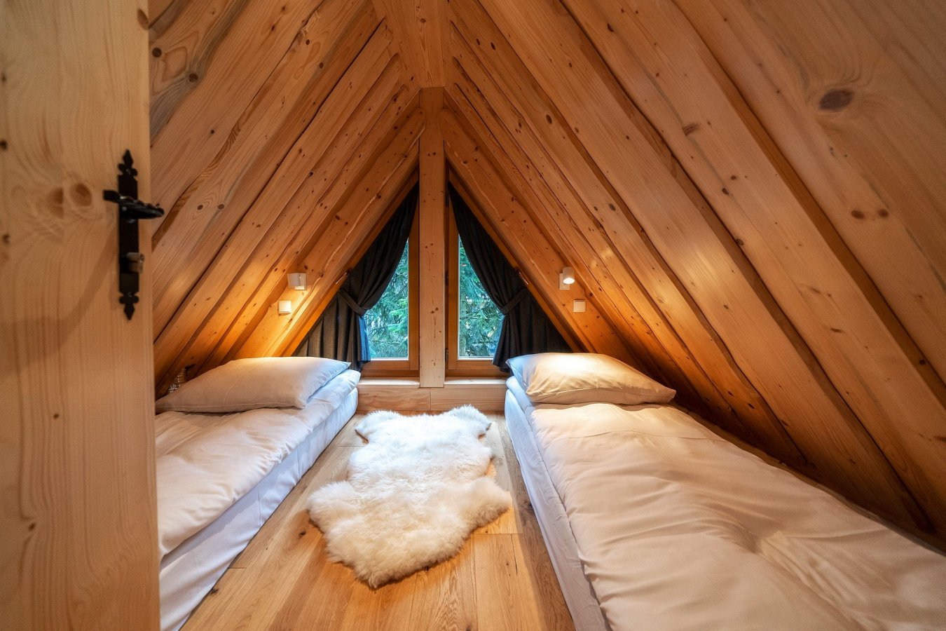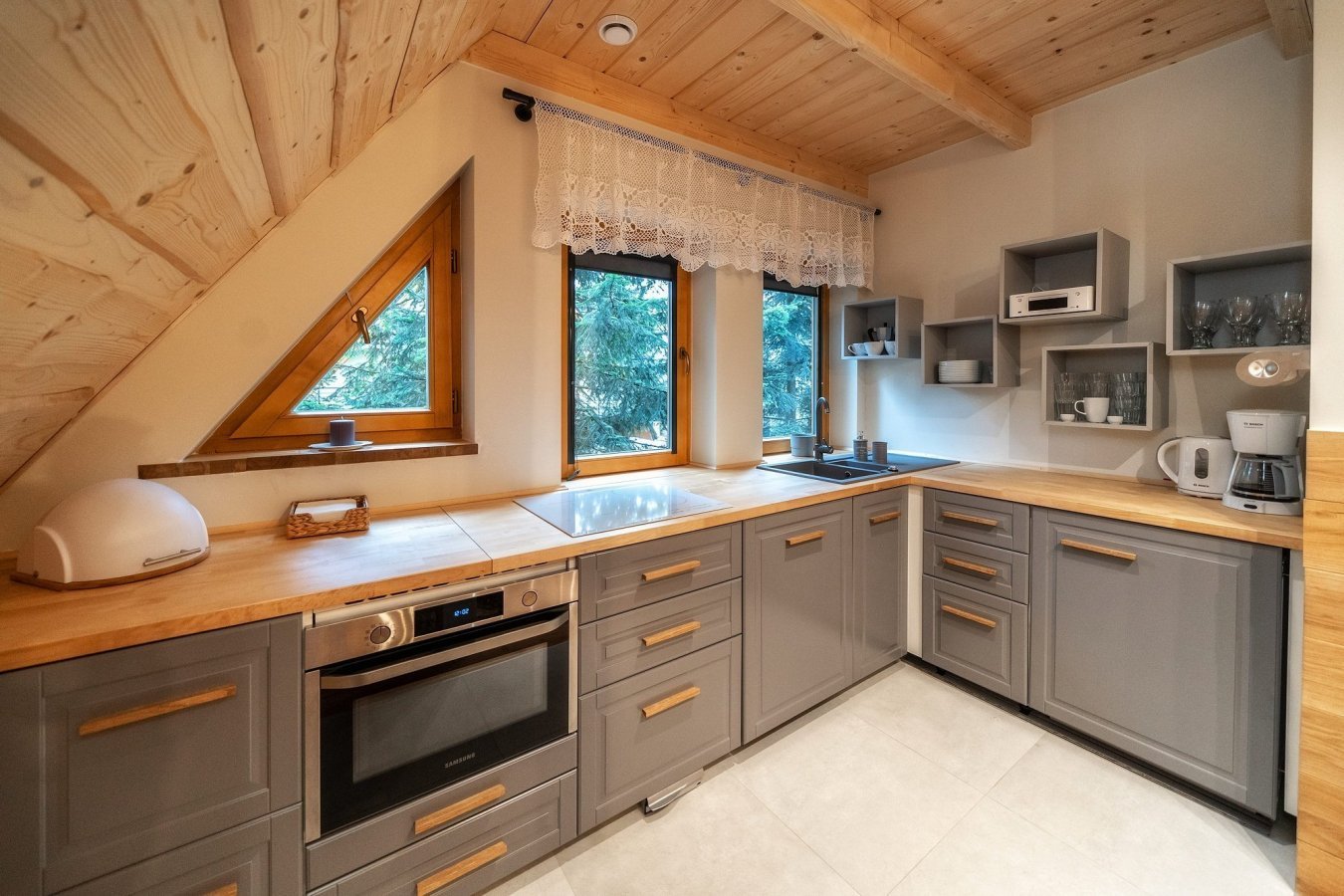 Piętrowy apartament z 4 sypialniami, w ciszy, w otoczeniu drzew, z zadaszonym tarasem z widokiem na Giewont.